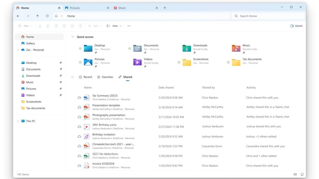 ## مایکروسافت در حال آزمایش یک بخش جدید “اشتراک گذاشته شده” در File Explorer Windows 11 است مایکروسافت در حال حاضر در حال آزمایش یک بخش جدید “اشتراک گذاشته شده” … ادامه خواندن یادت نمیاد که فایل به اشتراک گذاشته شده در ویندوز 11 کجاست؟ مایکروسافت قول داده که پیدا کردن فایلهای مورد نیاز شما رو آسانتر کنه.